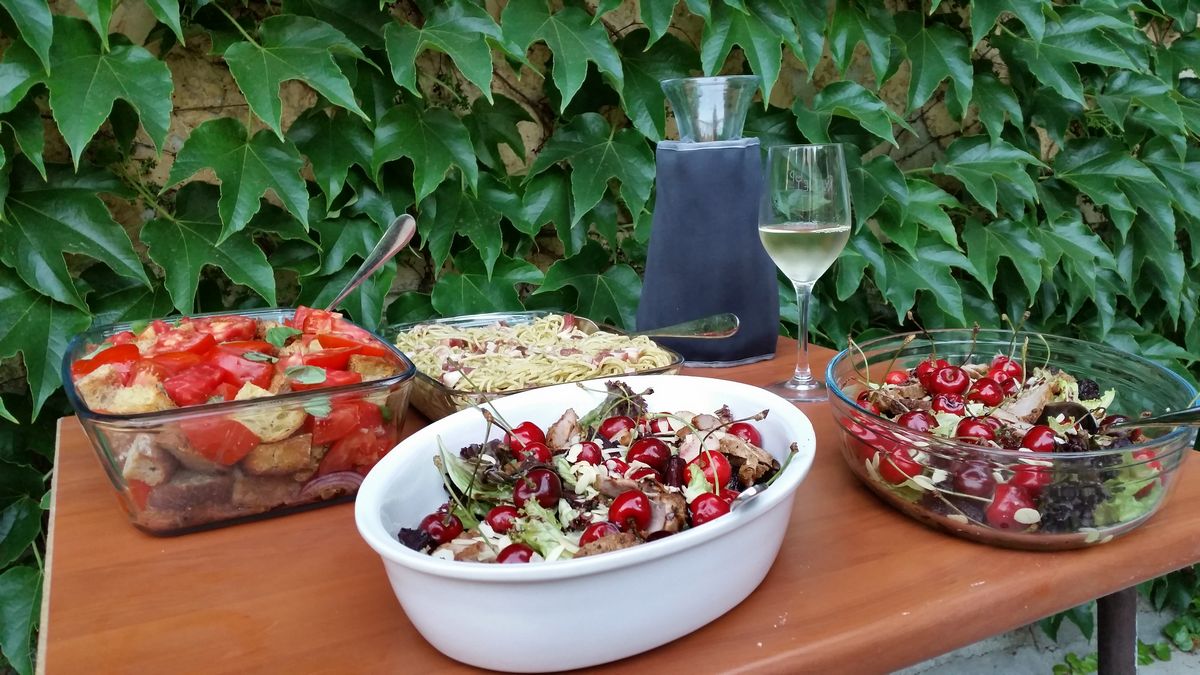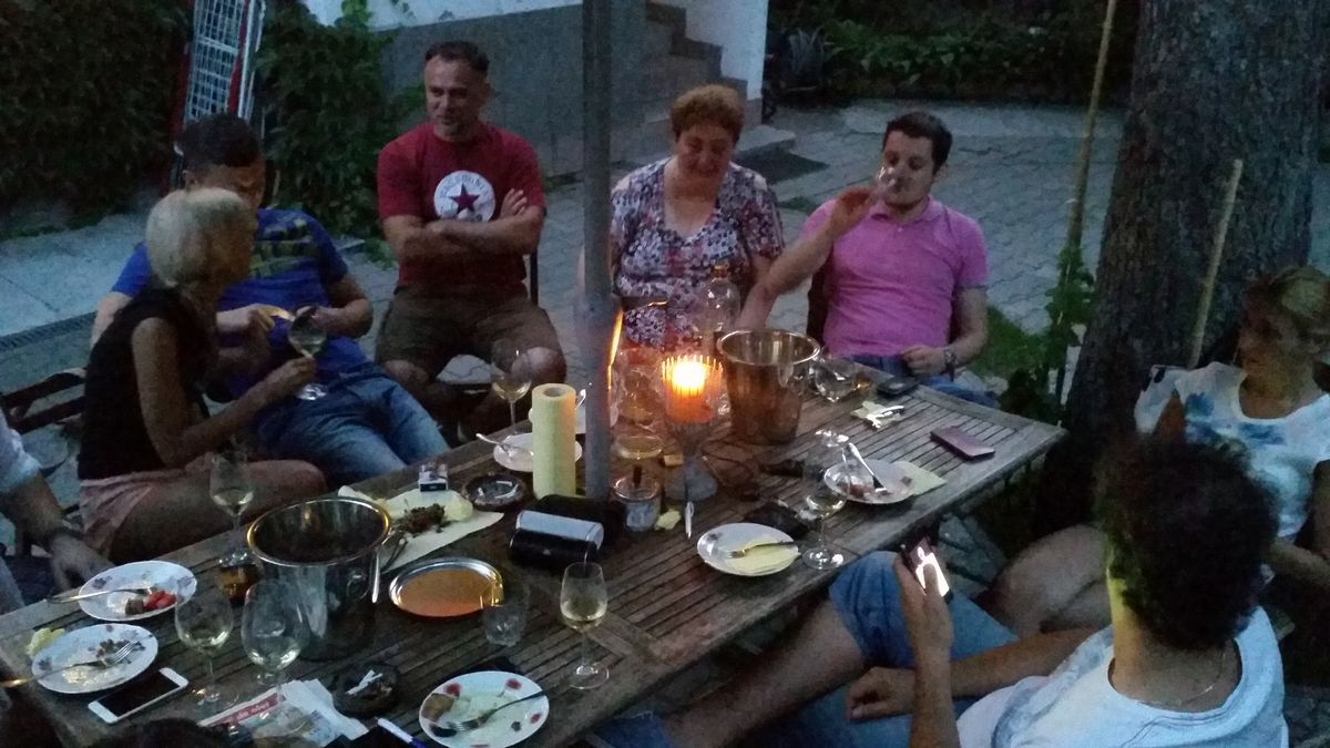 Un blind de Fetească Albă este, poate, mijlocul cel mai potrivit de a-ți petrece noaptea toridă de sâmbătă, dacă nu vrei să te zbuciumi prin ștranduri și prin alte localuri de consumat energii suplimentare. Am ales să-l punem în scenă în curtea casei, în 14 prieteni, dacă nu ținem seamă de pisicul emblematic al clubului și de cockerul zbanghiu, în calitate de oaspete. Fiind îndrăgostit de Feteasca Albă, soi suav, delicat și prea puțin înțeles poate tocmai din pricina calităților discrete și cumințeniei intrinseci, am vrut să-mi împărtășesc pasiunea cu ajutorul a nouă vinuri, monocépage-uri ori cupaje conținând acest soi. Tina a pregătit paste și o salată de bunătăți din care am avut grijă cu plăcere să nu rămână nimic. Iar Mihai, de felul său avocat pasionat de vin, veni cu niște albe Châteauneuf-du-Pape cumpărate chiar de la sursă.