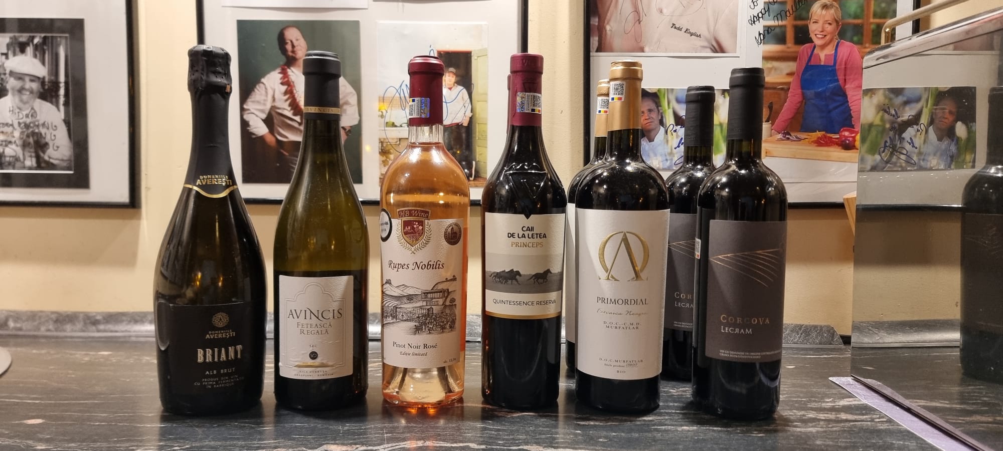 Lista degustării a cuprins: Domeniul Averești Briant Alb brut, Avincis Fetească Regală 2022, HB Wine Rupes Nobilis Pinot Noir Rosé 2023, Caii de la Letea Princeps Quintessence Reserva (Fetească Neagră, Cabernet Sauvignon, Merlot, Cabernet Franc și Petit Verdot din ani diferiți), Domeniul Bogdan Primordial Fetească Neagră 2021, Corcova LECRAM 2017 (Cabernet Sauvignon, Merlot, Syrah).
