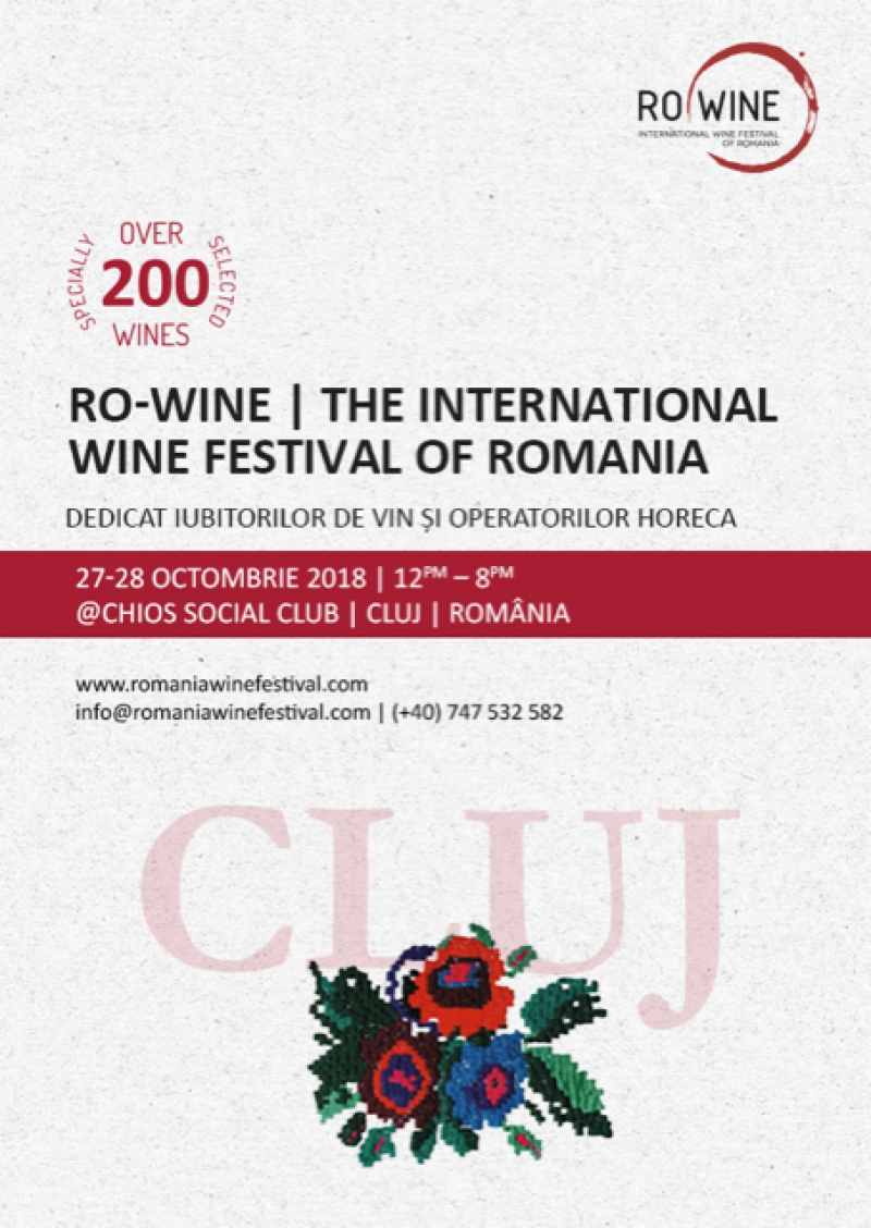 Ajuns la cea de-a treia ediție în București, RO-Wine|The International Wine Festival of Romania, se extinde către inima Transilvaniei, urmând să prezinte în această toamnă o selecție spectaculoasă de vinuri premium și superpremium publicului din Cluj-Napoca. Evenimentul dedicat iubitorilor de vin transilvăneni va fi găzduit de Chios Social Club, în 27 și 28 octombrie.