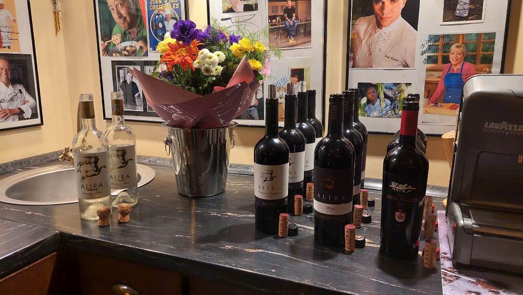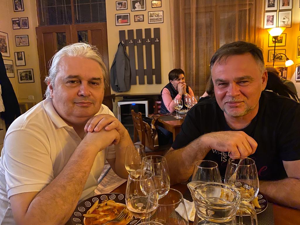 Amicul Adrian Pașca, un om de vin cu care am împărțit de-a lungul anilor multe bucurii oenofile, ne-a pregătit și servit mai multe vinuri și bunătăți. De la Alira ne-a destupat cinci sticle cu licori remarcabile: Flamma Charme Rosé (Fetească Neagră), Sauvignon Blanc 2021, Aliento Rosé (Fetească Neagră, Cabernet Sauvignon, Merlot) , Cabernet Sauvignon 2016, Merlot 2017. La final, a deschis un extraordinar vin bulgăresc marca Enira, Domaine Bessa Valley Enira Reserva 2016 (Merlot, Syrah, Cabernet Sauvignon, Petit Verdot).