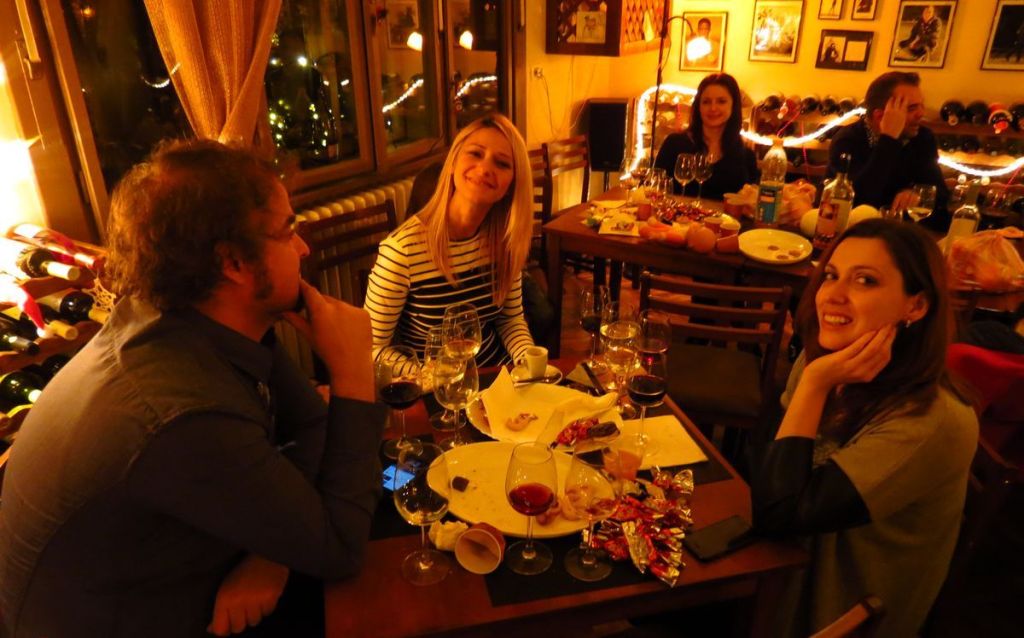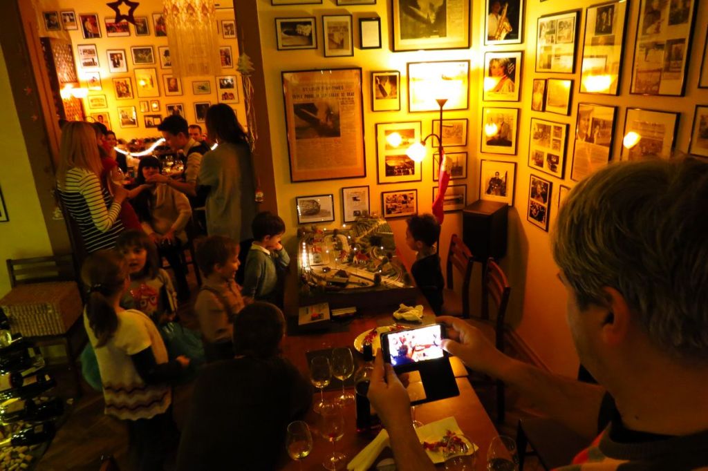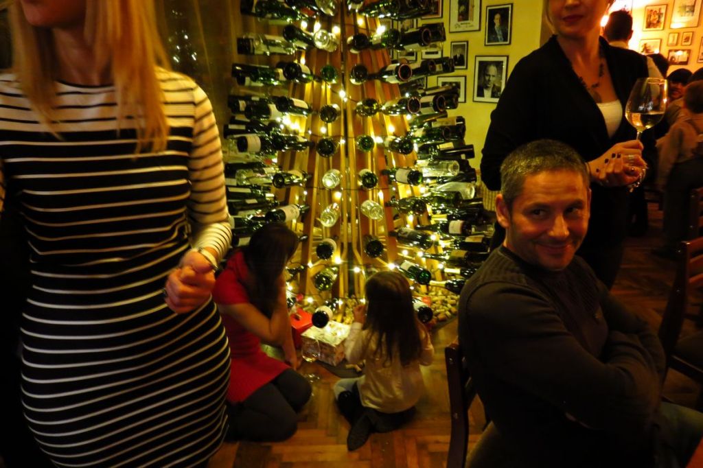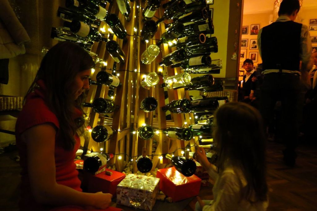Au fost 12 copii și ceva mai mulți oameni mari în seara de 4 decembrie în clubul nostru. S-a vorbit în română, engleză, italiană și poate chiar în tagalog, adică în filipineză. Andrei s-a îngrijit ca trenulețul să funcționeze perfect înlăuntrul microuniversului feroviar pe care el însuși l-a creat. 240 de sticle cocoțate în bradul făurit de Zoli după o idee de Dan și niște planuri de Mircea luminau înlăuntrul odăilor bunicii. În cutiile de vin îmbrăcate în dopuri de artistul clubului, un Moș Nicolae venit mai iute a strecurat niște pachețele cu daruri, dar și mici bețe moraliste. Copiii au băut suc, noi am băut vin, în fiecare sticlă licărea o luminiță de sărbătoare, tot așa cum în ochii celor mici licărea o bucurie ancestrală.