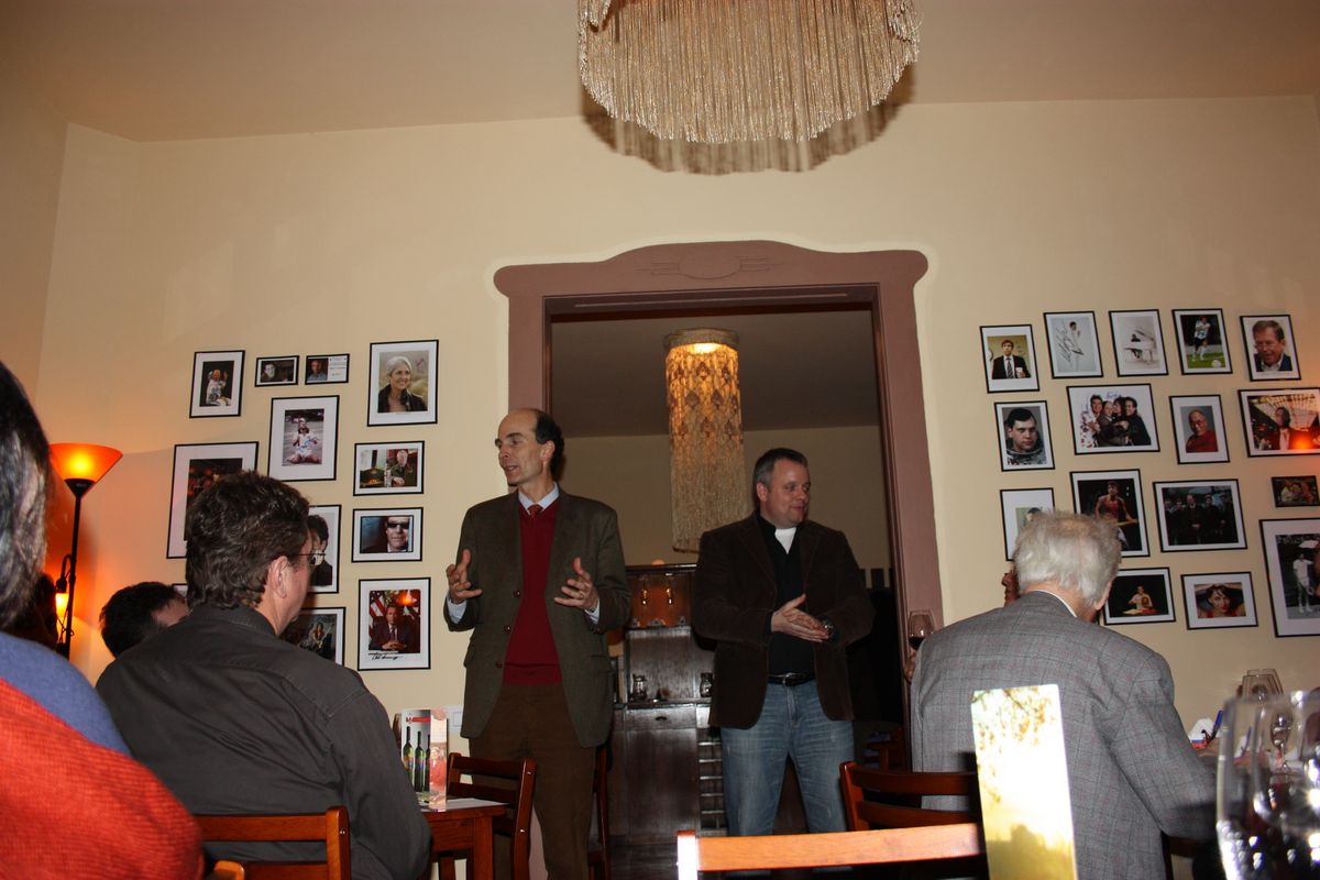 Artizanilor Casei de vinuri Ştirbey li s-au adresat întrebări extrem de interesante şi totodată pertinente, întrebări cărora baronul austriac şi oenologul neamţ le-au răspuns într-o limbă română impecabilă. Au urmat apoi conversaţiile la un pahar de vin, invitaţii abordându-i pe oaspeţi, spre surprinderea aceastora, în limba germană.