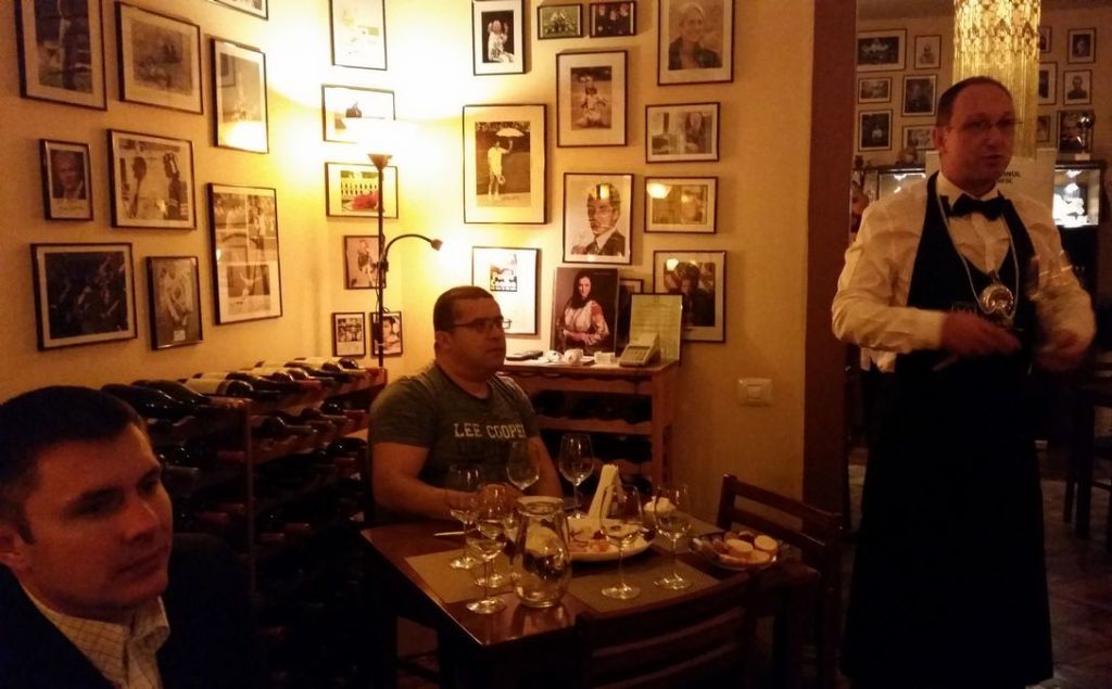 Somelierul Nicolae Pop și directorul regional de vânzări Paul Stoica au adus cu ei următoarele vinuri: Domenii Tămâioasă Românească 2015, Colocviu la Roma Tămâioasă Românească 2015, Domenii Grasă de Cotnari 2015, Colocviu la Moscova Grasă de Cotnari 2015, Domenii Rosé (Fetească Neagră) 2015 și Domenii Fetească Neagră 2014. Dincolo de reprezentația în sine, care a fost una vocală, atotcuprinzătoare, am putut observa că paharele s-au golit de la sine, în virtutea unor plăceri îndelung exersate în club. Privind enigmatic de pe țesătura unui tricou, însuși Il Padrino a închinat un pahar de rosé împreună cu degustătorii neautorizați de la Arad.