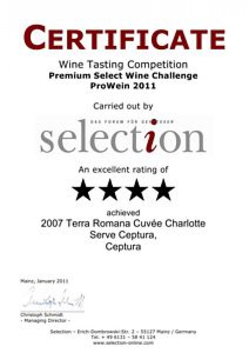 Cuvée Charlotte 2007, un vin de peste 90 de puncte la Premium Select Wine Challenge 2011 Recomandat