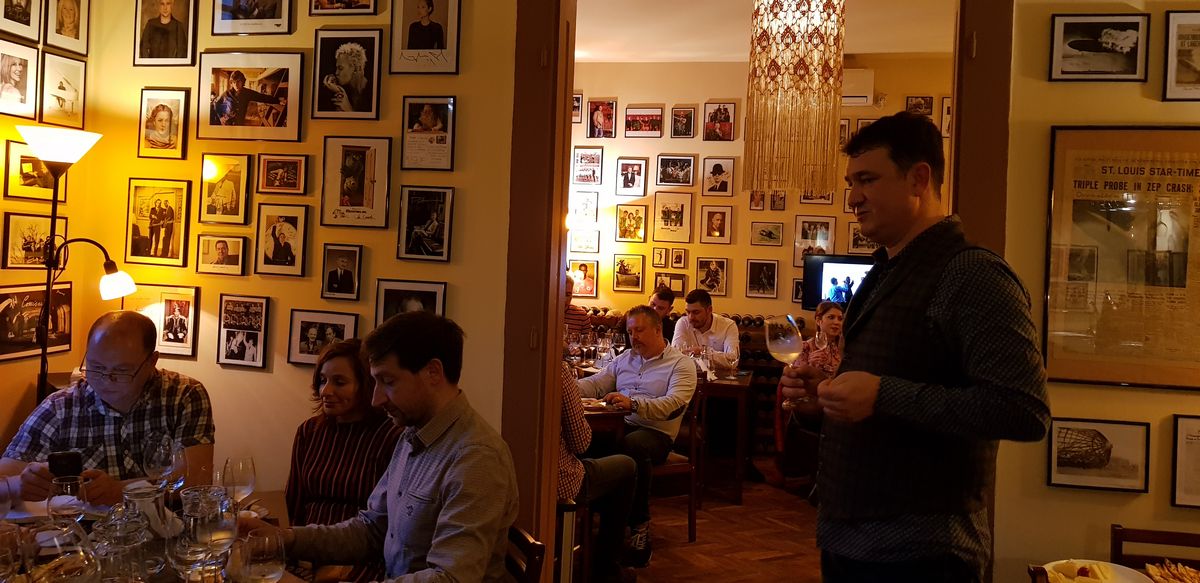 În timp ce serveam câte o Fetească, câte un Kerner ori câte un Rosé, am putut revedea la tv-ul CDViN, grație unui slide show ad-hoc, sute de fotografii făcute în cadrul multelor evenimente organizate în club sau în afara lui și legate de Villa Vinèa. Între acestea și cele care au surprins inaugurarea cramei din județul Mureș, de lângă satul Mica, la care a fost prezent și proprietarul acesteia. Atunci, Herr Heiner Oberrauch, antreprenor sudtirolez, ne-a servit el însuși un gulaș de neuitat, ne-a cântat la acordeon și a făcut echipă muzicală cu primașul tarafului țigănesc care a condimentat sonor evenimentul.
