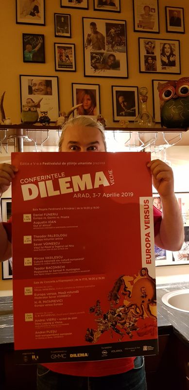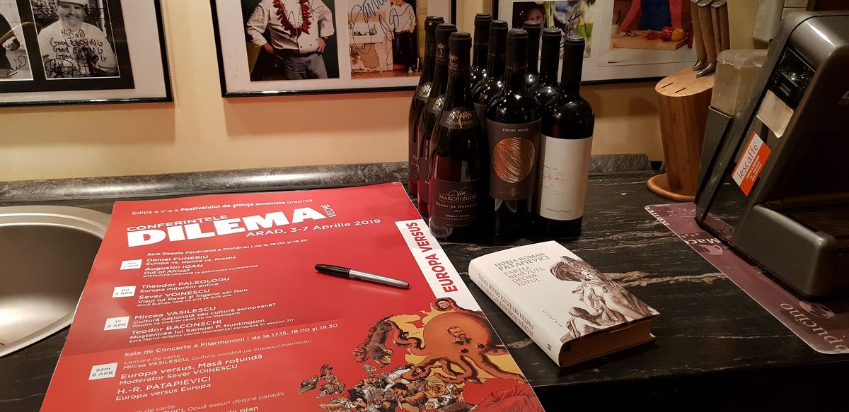 N-am apucat să conferențiez însă despre asta la ultima ediție a Festivalului de științe umaniste, desfășurat recent la Arad. În schimb, am avut bucuria să împărtășesc savori oenofile cu câteva nume de marcă ale culturii române, aflate în burg de-a lungul celor cinci zile de festival, pentru a susține Conferințele Dilema Veche cu tema Europa versus.