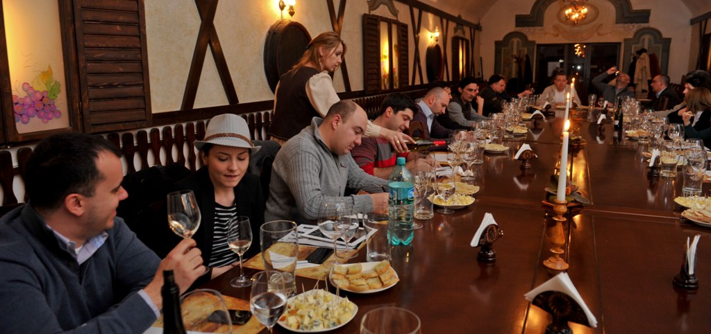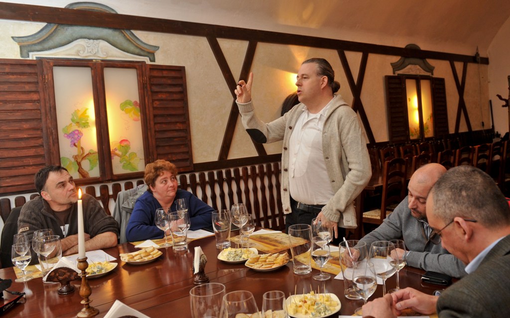 După degustare invitaţii au avut parte de un meniu sofisticat, care a cuprins carpaccio cu somon, creveţi cu cremă de mazăre, ruladă de raţă cu nuci şi parmezan, vită cu cremă de trufe şi un desert cu mere şi caramel. La masă s-au servit vinuri din importurile Cramelor Recaş: Planeta, Robert Mondavi şi Cono Sur.