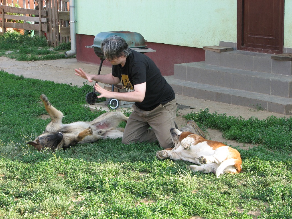 Acolo s-a amenajat o terasă ad-hoc, s-au ciocnit simbolic paharele pentru viitoarea autostradă, s-au făcut poze istorice cu degustători cu pălării şi pahare de vin, după care terasa improvizată a fost mutată în curtea casei lui Silviu, unde, în deplină legalitate, a avut loc deschiderea sticlelor şi degustarea propriu-zisă. Problema au fost însă cei doi ciobăneşti germani şi un basset care nu se simt bine în chenel, aşa că au fost lăsaţi în curte, iar "vesticii", împreună cu Silly, teckelul sârmos, mic, dârz, tenace, deloc prostuţ, cu privire umană, s-au mutat cu masă şi scaune în spaţiul îngrădit destinat căţeilor, pentru a nu-i stresa pe ceilalţi prieteni patrupezi.