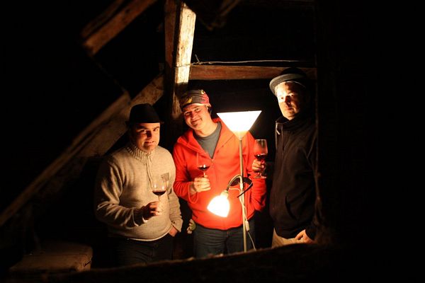 Acompaniaţi de un Sauvignon Blanc La Cetate 2010 şi de un Caloian Cabernet Sauvignon 2010, ambele recomandate de Pivnicer, am trecut micul test de alpinism - o scară cu 14 trepte - pentru a ajunge în locul dorit. Acolo ne-au întâmpinat, în lumina difuză, obiecte vechi sub acoperişul susţinut de grinzi mai bătrâne decât oricare dintre noi. După degustarea nonconformistă, am uitat de frig şi am întrezărit cum va arăta locul peste doar câţiva ani: o selectă mansardă cu câteva loji exclusiviste pentru prietenii care vor dori să deguste cele mai interesante vinuri româneşti, un cochet dormitor şi o terasă de pe care degustătorii de vin neautorizaţi şi viitorii somelieri la fel de neautorizaţi vor putea admira împrejurimile locului aflat la doi paşi de malul Mureşului.