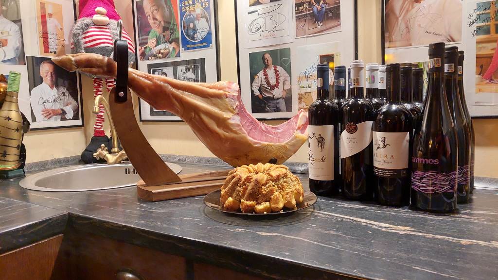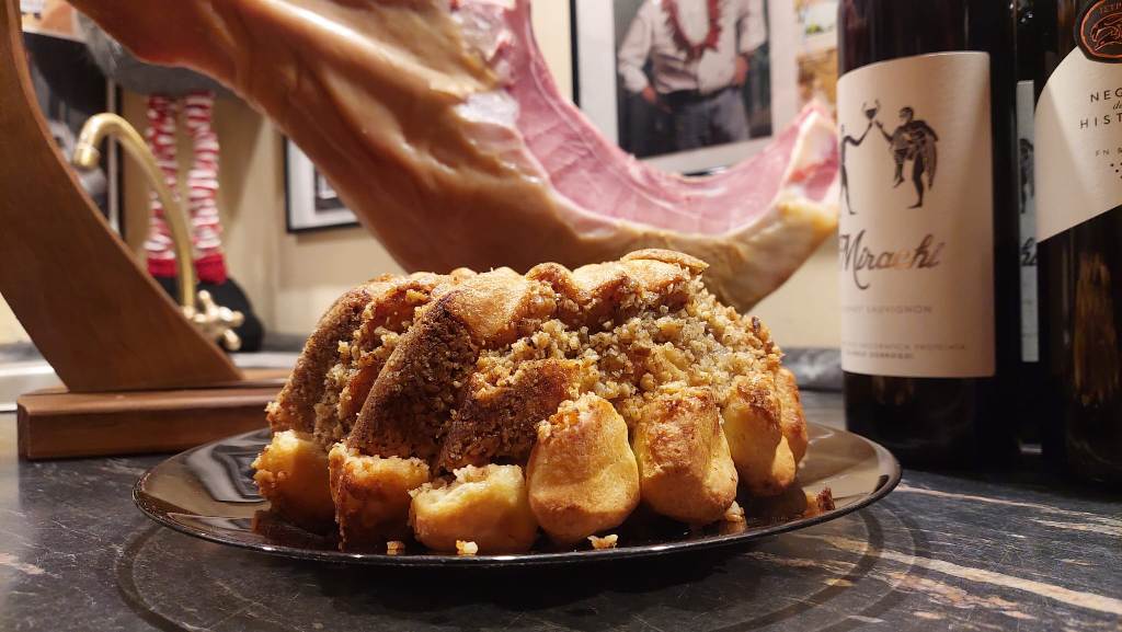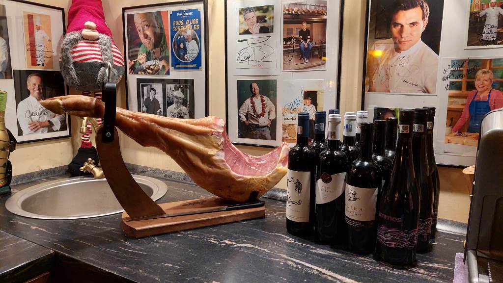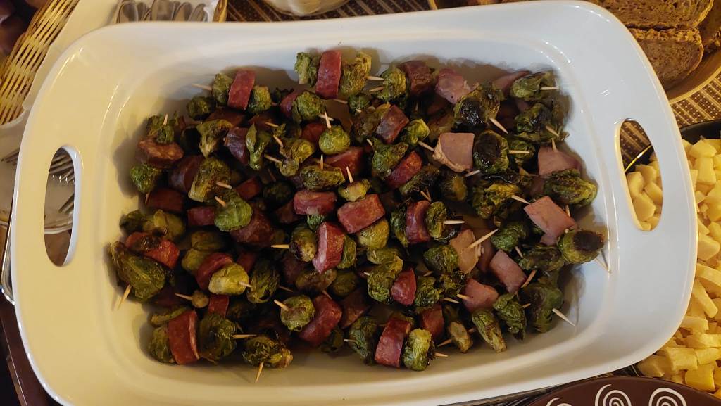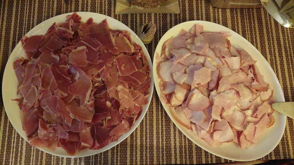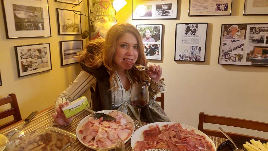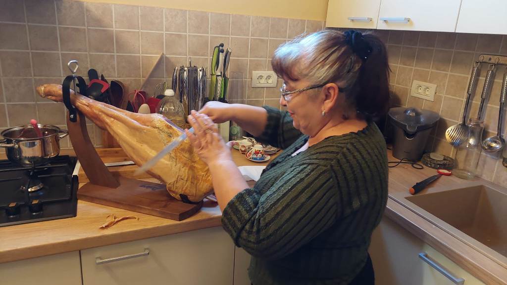 Tradițional vorbind, prin părțile noastre transilvane și bănățene de Europă, nu poți, n-aare roost să începi anul fără niște șonk, șonc, șoancă în compania vinului și a prietenilor. Am fost poate vreo douăzeci cu toții, la început de an, în fața unui jamón serrano, a pateului cu vin de Sancerre al lui chef Alex , a bunătăților cu varză de Bruxelles și mai ales de Cunța ale Alexandrei. Ca să nu mai zic de celelalte specialități comandate, pregătite, aduse de alți entuziaști degustători neautorizați prezenți la acest eveniment apetisant. Adina ne-a răsfățat cu găluști de aur/aranygaluska,o dulce specialitate din caietul bilingv de rețete al lui Nagymama.