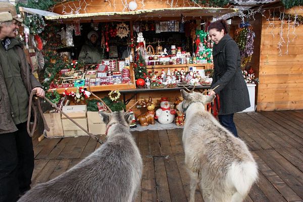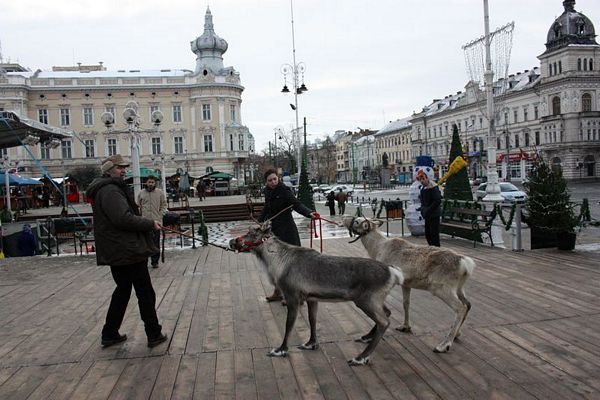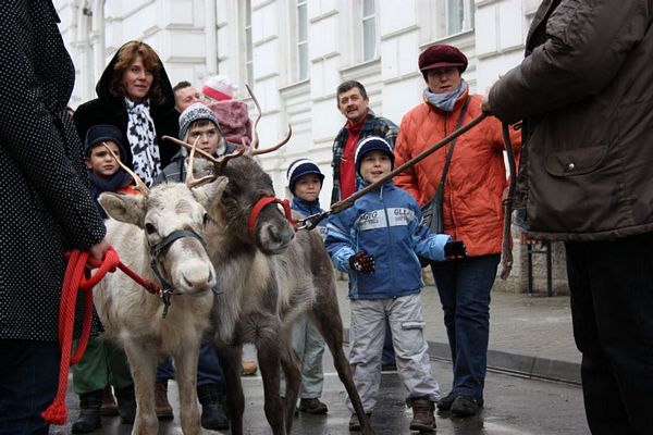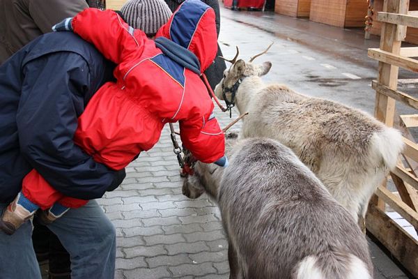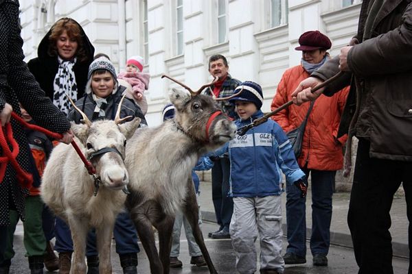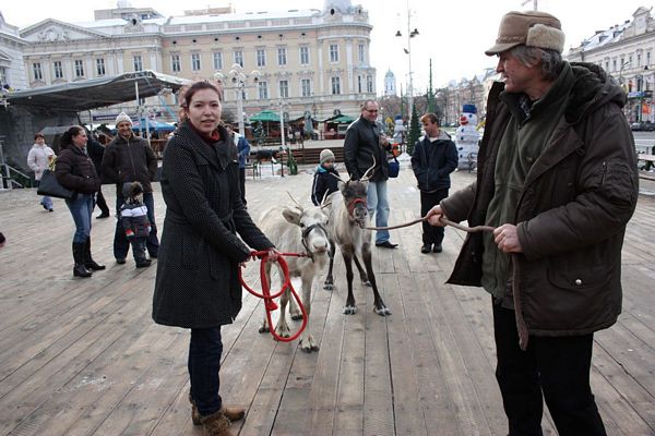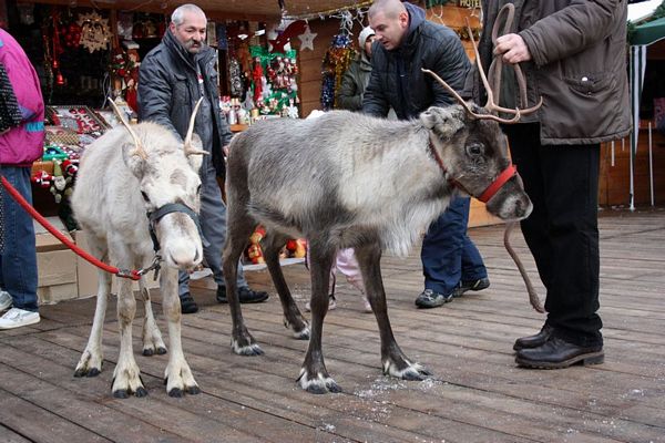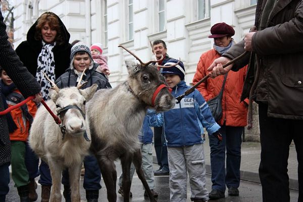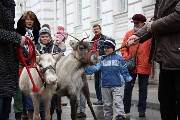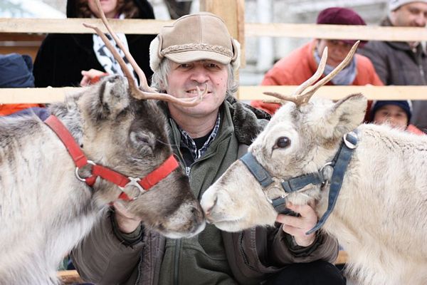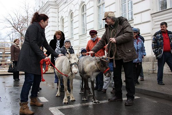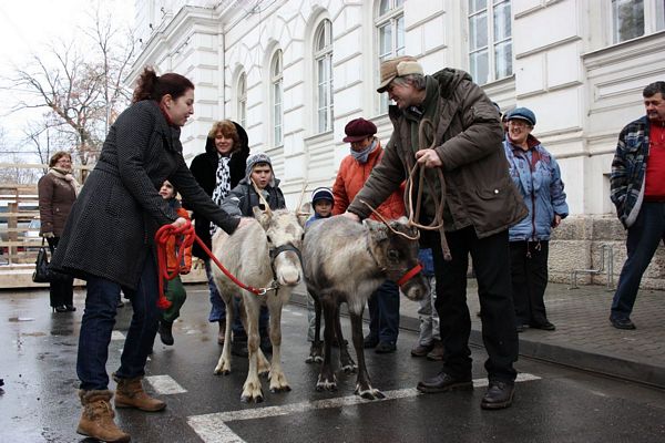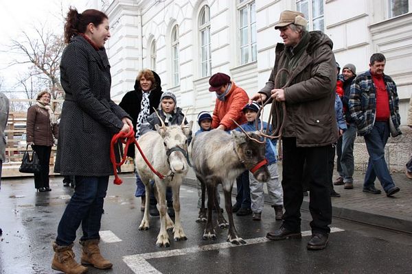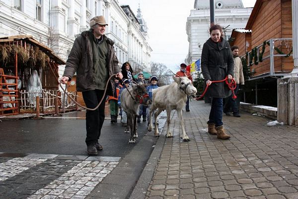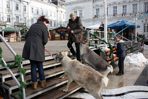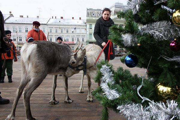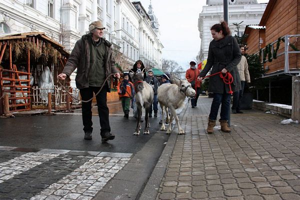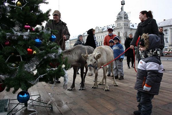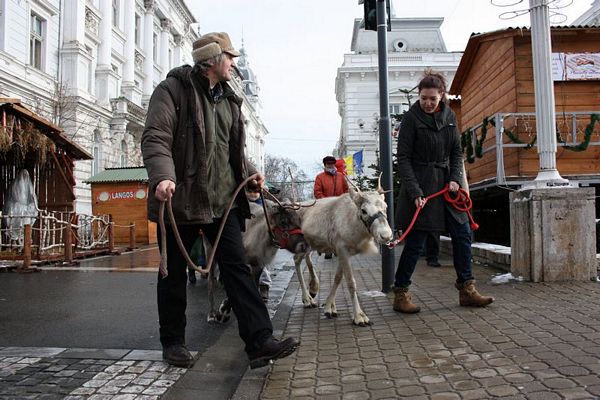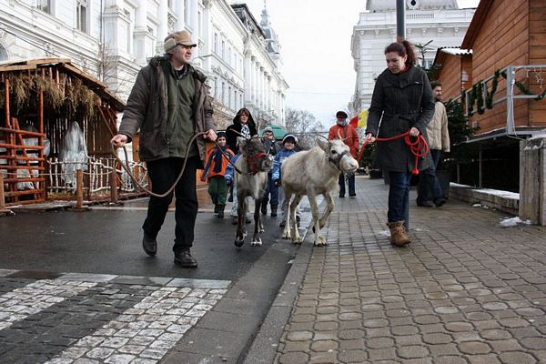 Promenada prin faţa primăriei din Arad poate fi mult mai interesantă dacă îi ai alături pe Rudolf şi Hanna, doi reni născuţi în Suedia care locuiesc de vreo doi ani în localitatea Sântana din judeţul Arad. Al doilea an consecutiv, primăria i-a adus la vedere şi le-a amenajat un ţarc unde vor sta până după Crăciun spre bucuria copiilor din oraş, care se pot fotografia alături de Rudolf şi Hanna. Proprietarul renilor, Eugen Julean, care este şi crescător de elită de câini din rasa Ciobănesc German, îi scoate din când în când la plimbare prin faţa tarabelor, înconjuraţi de un alai de copii şi fotografi amatori.