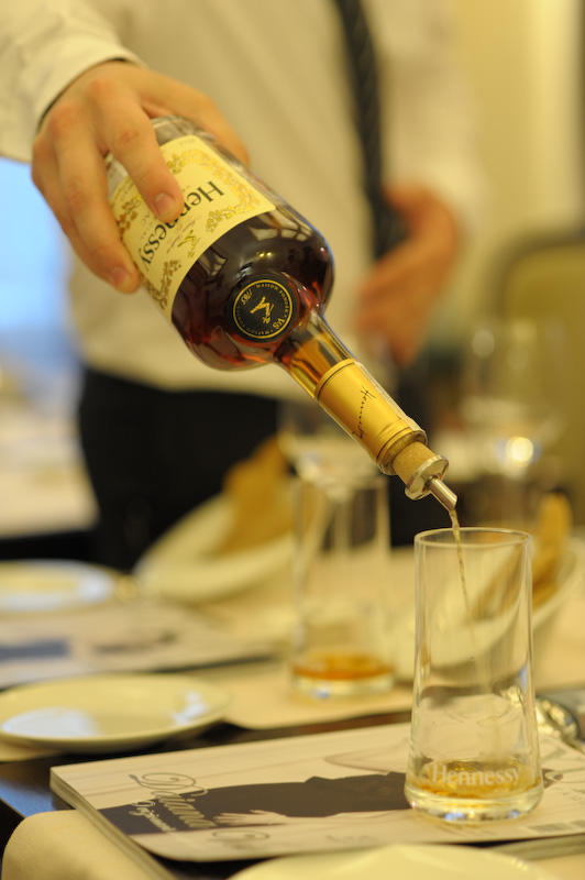 Restaurantul Graf din Oradea a încercat joia trecută să îmbine degustarea acestui produs fin franţuzesc cu diverse alintări gastronomice care să se asorteze cu acesta. Somelierii Septimiu Crişan şi Vlad Mureşan au găsit, probabil prin experimentări alchimice, aşa cum se întâmplă poate oriunde în marile bucătării, formula care să le aducă împreună. Pentru Hennessy VS, very special, un cognac mai puţin maturat dar foarte atent selecţionat din strugurii de podgorie din regiunea Cognac, ţinut în butoaie de stejar până la 10 ani, am încercat nişte biscotti, dar la mult mai finul Fine de Cognac am degustat la fel de fine brânzeturi, învechite sau mai proaspete, cu nuci şi miere. Gheaţa a fost o idee excelentă, pentru că a înmuiat alcoolurile volatile şi a dat voie papilelor gustative să simtă cu adevărat finele arome ascunse, de coajă de portocal, coajă de lămâie, citrice şi miere. Am încercat şi sugestia de a îl combina cu apă tonică, chinina din compoziţia acesteia întărind anumite gusturi ascunse, dar răpind în acelaşi timp frumuseţea deliciilor mult mai rafinate. Ezechil Pop, reprezentantul firmei Da Silva, ne-a vorbit mult despre toate combinaţiile posibile în cocktailuri, iar Ioana Micu a intrat în detaliile alchimice ale facerii. Desertul serii a fost Hennessy XO (extra old) care combină peste 100 de eaux de vie, învechit până la 30 de ani. Acesta a acompaniat ciocolata neagră cu foiţă de aur, mousse de chocolat şi îngheţata cu multă, multă cacao.