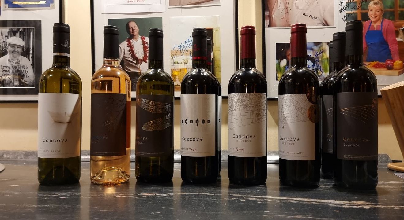 Astfel am putut degusta pe rând: Corcova Sauvignon Blanc 2022, Corcova Éclat Rosé 2020 (Cabernet Sauvignon, Syrah, Merlot), Corcova Lady Asquith 2017 (Chardonnay, Viognier), Corcova Fetească Neagră 2019, Corcova Reserve Syrah 2017, Corcova Reserve Cuvée Racoveanu 2017 (Cabernet Sauvignon, Merlot), Lecram 2017 (Cabernet Sauvignon, Merlot, Syrah).