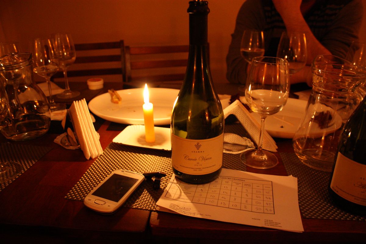 În frapiere şi pe fişele de degustare ale celor 29 de arădeni s-au regăsit o Fetească Regală 2009, un Aligoté 2009 şi un Cuvée Vişan 2010, alături de imberbul, dar surprinzătorul Gramma Sol. Acesta din urmă are o poveste interesantă, care ar merita povestită la un moment dat, într-o postare viitoare. Până la acel moment însă, trebuie spus că Gramma Sol a fost creat de ieşenii de la Casa Olteanu la iniţiativa unui potent om de afaceri clujean, iar oaspeţii clubului Vestik au fost protagonişti privilegiaţi unei degustări de Sol de la Gramma, în premieră absolută, arădenii având privilegiul de a fi cei dintâi cărora li s-a turnat în pahare interesanta licoare bahică. Gramma Sol este unul dintre cele trei cupaje în ediţie limitată, de un rafinament şi o fineţe aparte, calităţi pe care le-am dori prezente şi între însuşirile altor vinuri româneşti, mult mai cunoscute. Celelalte două cupaje sunt Gramma Do şi Gramma Mi, toate cele trei vinuri cu rezonanţă muzicală fiind obţinute în cadrul unui proiect special, cu sprijinul domnilor Ştefan Vuza şi Adrian Sâncrăian.