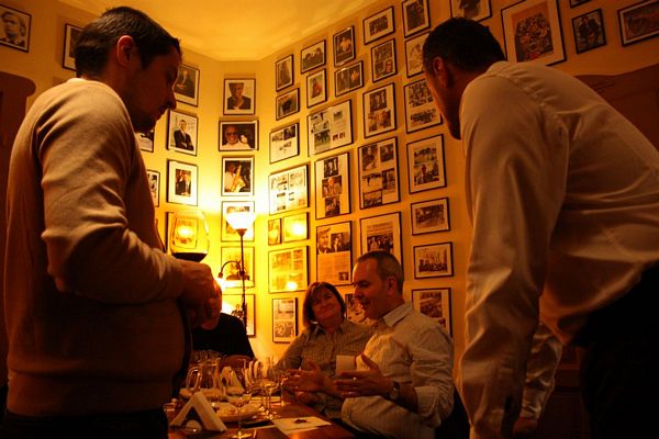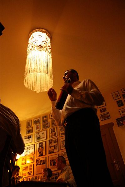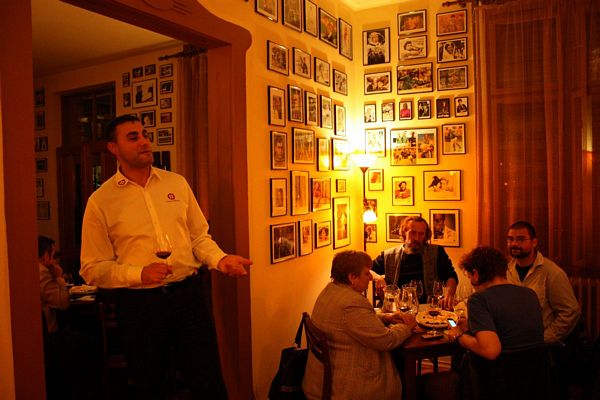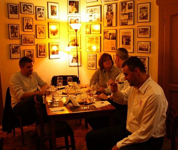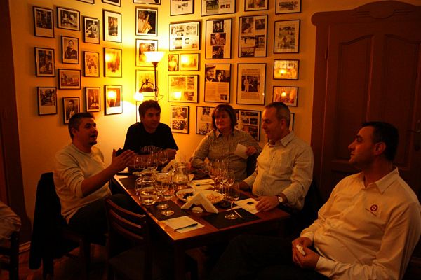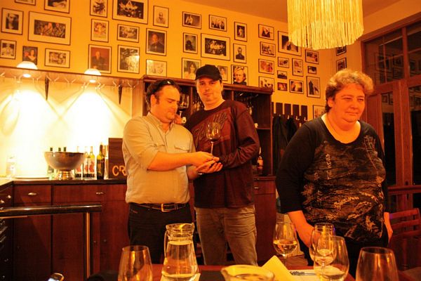 Cu câteva zeci de minute înainte ca degustătorii neautorizaţi să se strângă în club, am îngropat în gheaţa frapierei mai multe sticle de Sauvignon Blanc 2012 şi de Rusalcă Albă 2012 iar vinurile roşii au fost Drăgaica Roşie 2011 şi Eticheta Roşie 2011. Sauvignonul e fresh, plăcut, răcoritor, numai bun de servit la sfârşitul acestui octombrie iarăşi cald, ca o toană de toamnă capricioasă şi uneori chiar blândă. Rusalca este o bucurie pentru connaisseurs, are o aciditate ridicată şi postgust complex. Pentru mine, Drăgaica a fost cel mai contrariant vin al serii, a evoluat frumos, se deschide în pahar cu o mulţime de arome, dar care realizează un întreg armonios, în continuă devenire, desăvârşire. Cât despre Etichteta Roşie, acesta e un vin mare, simţi asta de la primul contact nazal. Mă gândesc să-mi umplu vinoteca cu el, mai ales că-mi place enorm şi ambalajul habsburgic.