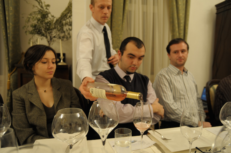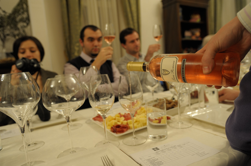 Profesorul lor este Dorin Popa, care poate vorbi ore in şir despre delicateţea aromelor şi gusturilor din fiecare pahar, şi Cristian Drimba, managerul centrului care a adus joi seara un invitat de la Ceptura: Dan Cornel Săvulescu, împreună cu cinci membri ai "familiei": Fetească Albă 2010 din gama Vinul Cavalerului, Cuvée Amaury 2009 Terra Romana, Rosé 2010 Terra Romana, Fetească Neagră 2008 Terra Romana şi Cuvée Charlotte 2007 Terra Romana.
