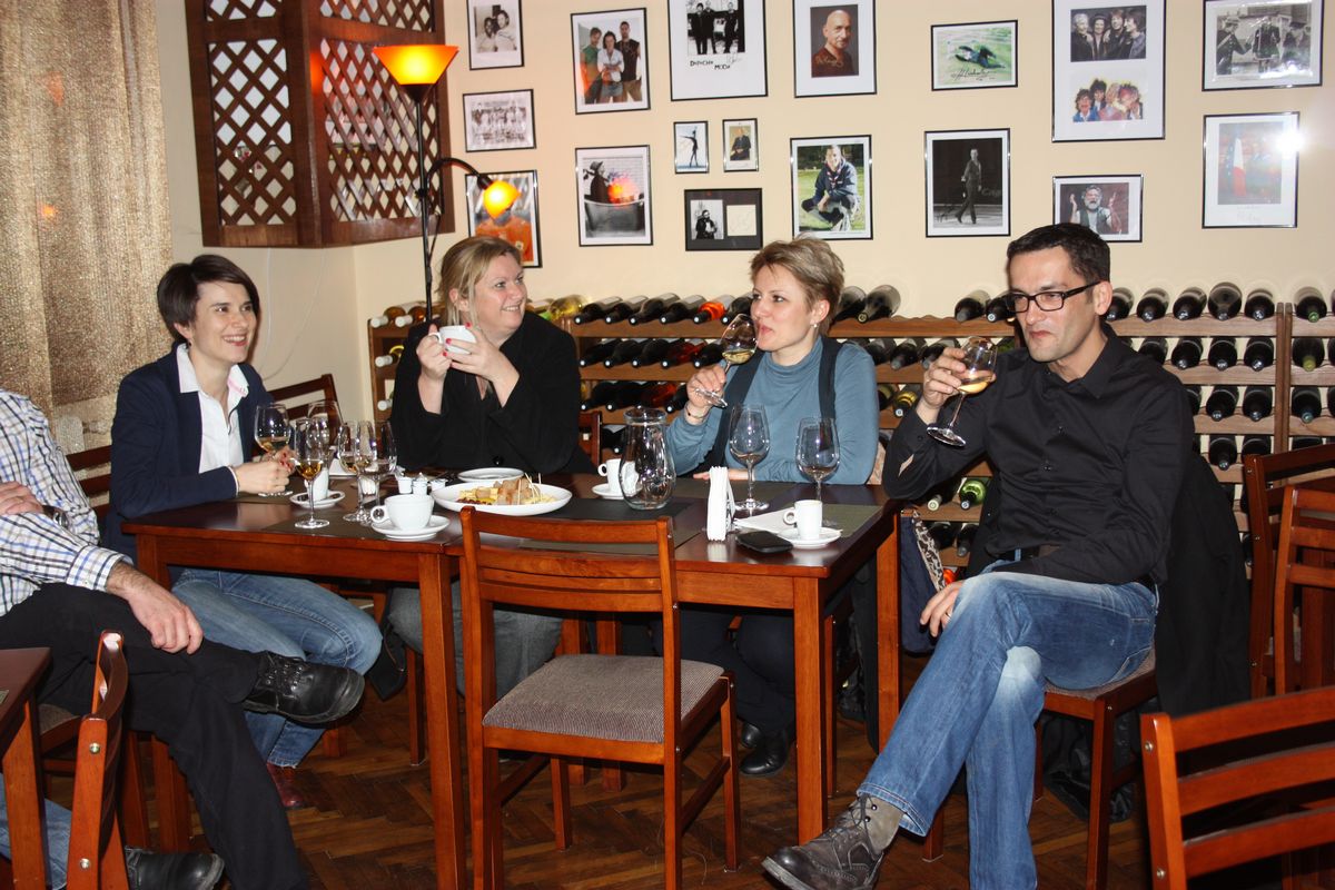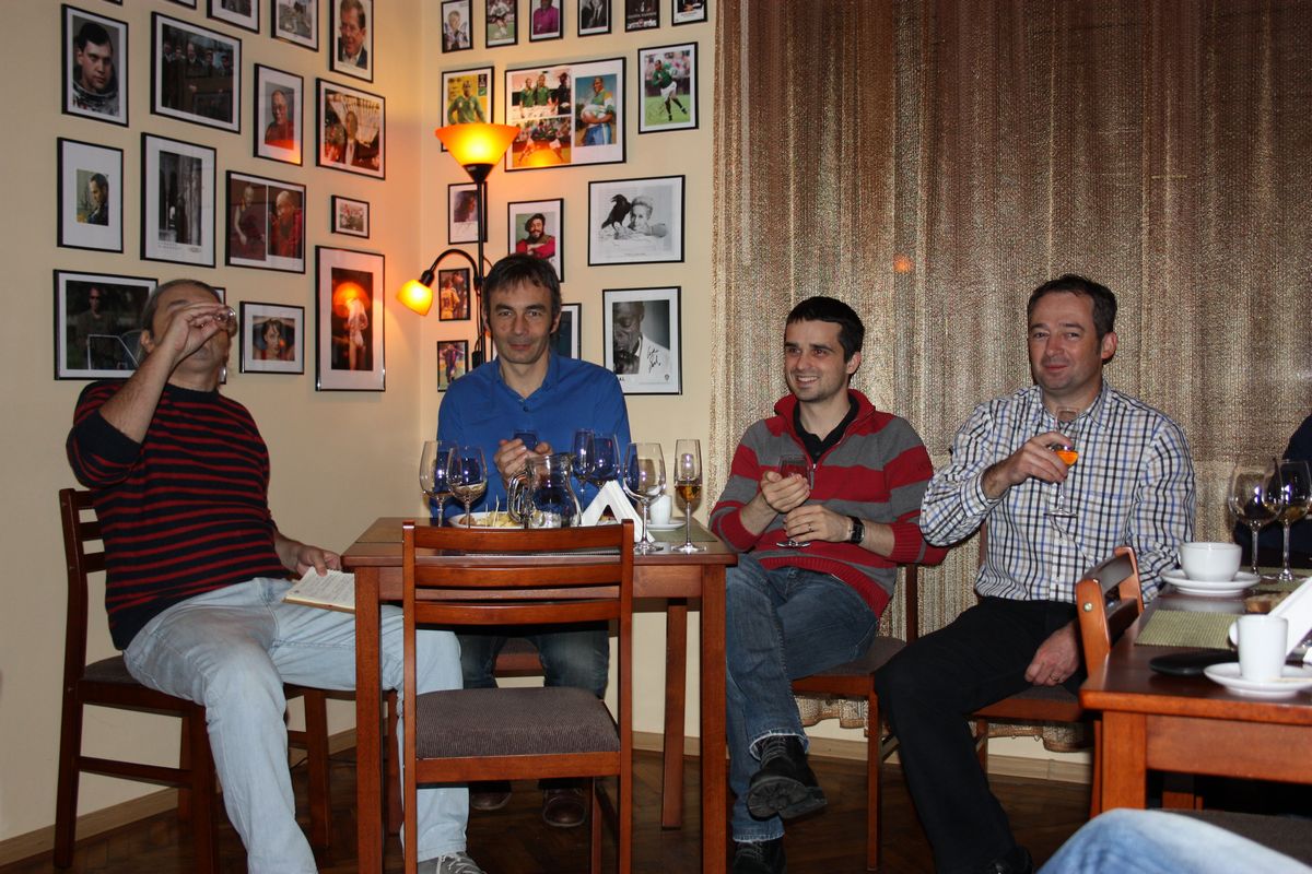 Doi dintre ei au venit chiar din Franţa, iar una dintre invitate, de un pic mai departe, din Marea Britanie. Pentru ei, şi pentru ceilalţi invitaţi la degustare, am pregătit şase vinuri de top de pe rafturile clubului. Sauvignon Blanc 2012 de la Villa Vinèa, Fetească Regală/Pinot Gris 2012 de la Avincis, Nectar of Transylvania 2012 de la Liliac au stat la frapieră, iar Negru de Drăgăşani 2010 de la Prince Ştirbey, Merlot 2012 de la Bauer. şi Smerenie 2011 de la Crama Oprişor au fost luate chiar de pe standurile CDViN, după o mai lungă sau mai scurtă perioadă de învechire. Vestea bună este că vinurile se simt foarte acasă în dormitorul bunicii, atât de acasă încât cu anii petrecuţi acolo devin din ce în ce mai bune. Vestea şi mai grozavă este că nu e vorba aici de vreun discurs pro domo, ci de ceea ce cred şi spun prietenii veniţi din Franţa ori de pretutindeni.
