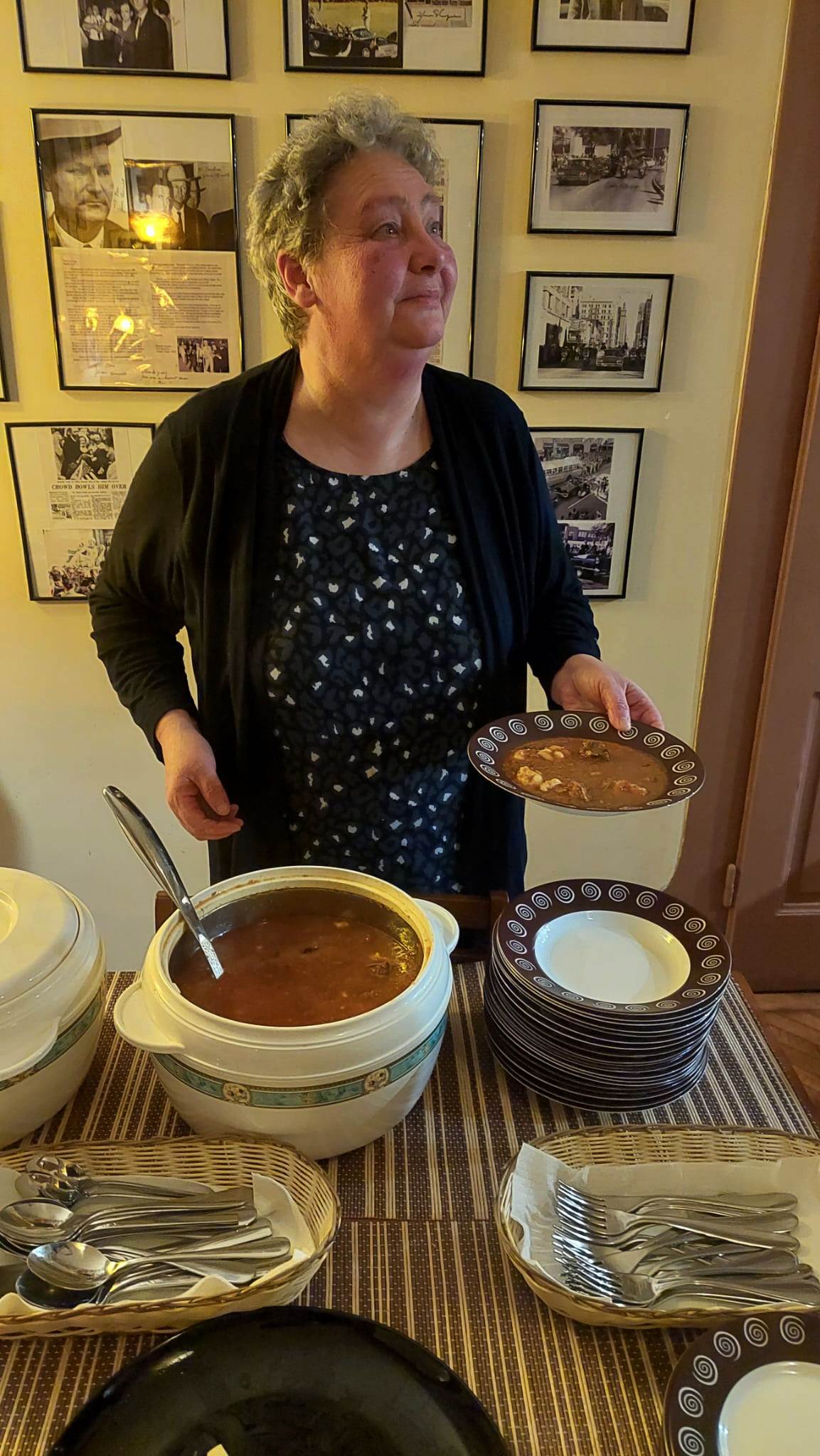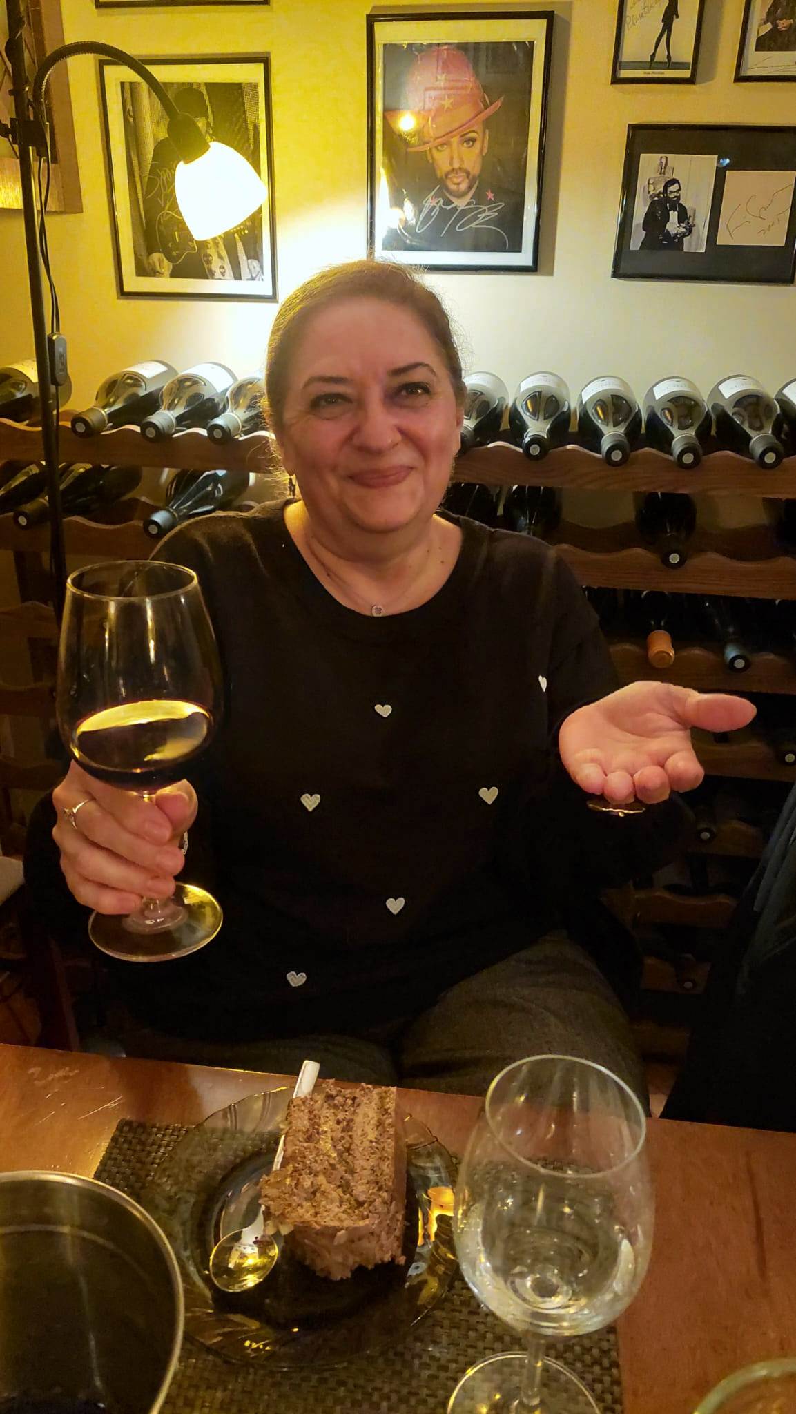 Adina ne-a ispitit cu aperitive, cu un irezistibil gulaș de vită și cu un sublim tort de nucă și ciocolată, toate servite în armonie cu vinurile.